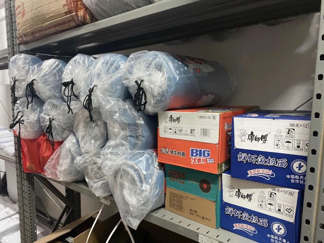 行政总务部立即制定应急方案,为突发情况做好保障,并在第一时间盘点防疫库存,拟定物资清单,及时采购防疫及需求物资。针对产业特殊性,为留守仓库值班人员配备了睡袋、折叠床、食品、防疫物资等,保障所有人员无后顾之忧。