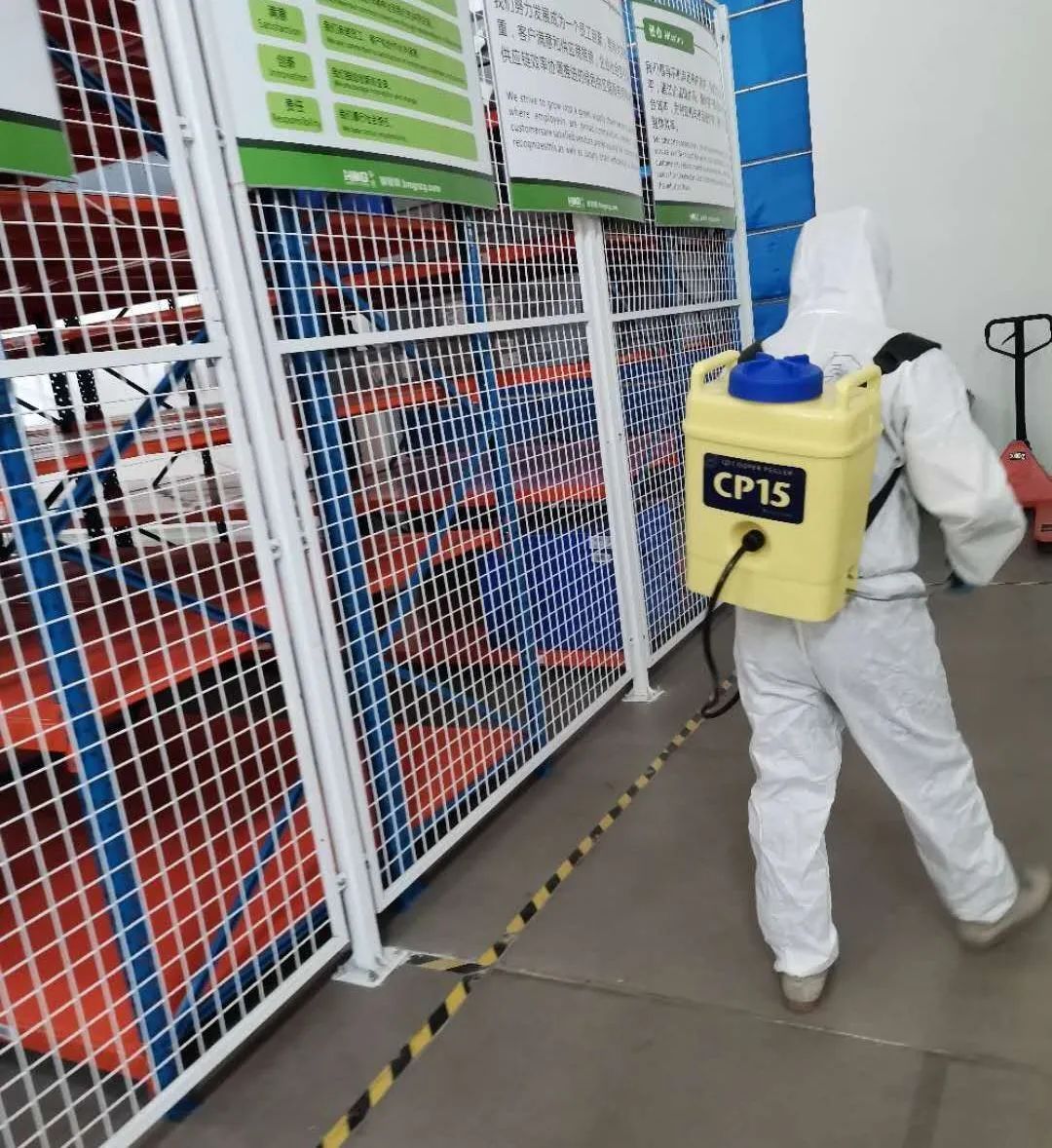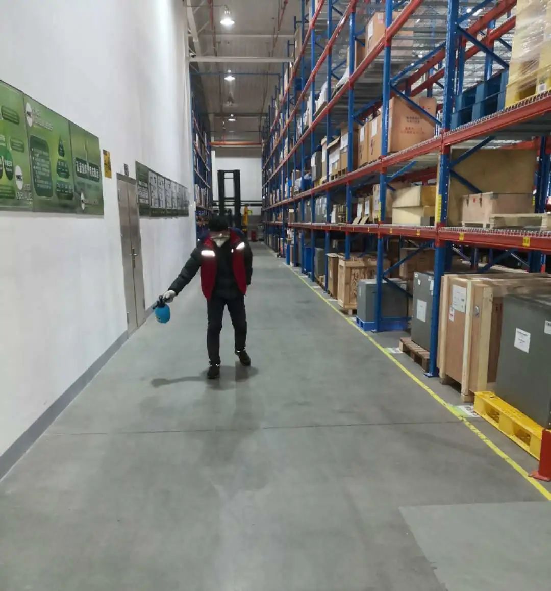 疫情封控前,泓明各地区行政总务人员严格执行外来访客登记制度——访客记录表、体温检测、行程码检验缺一不可。为避免疫情传播,安排工作人员协助仓库同事对仓库及货物进行相应消杀。
