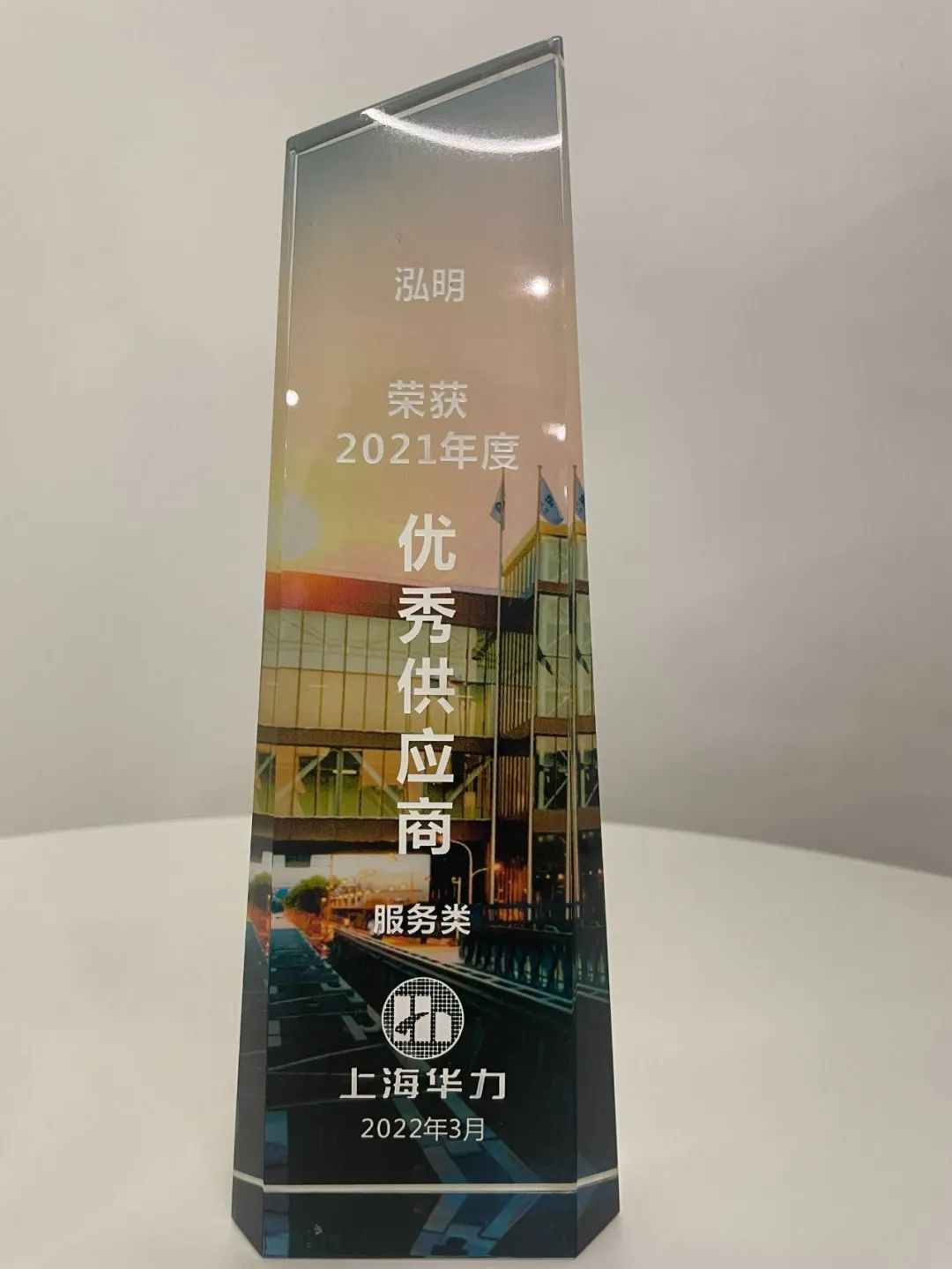 2022年8月18日,上海华力集成电路制造有限公司授予泓明“2021年度优秀供应商”奖牌,对我司清关、货代及仓储运输服务给予高度评价。2022年泓明继续本着成就客户的价值观,急客户所急,在上半年上海疫情封控期间,派出人员协助华力。在为华力跨省运输中,泓明发挥中流砥柱作用,为客户解决进出口及国内运输等方面的困难,着力协调大华虹一体化运输,助力华力获得客户认可。