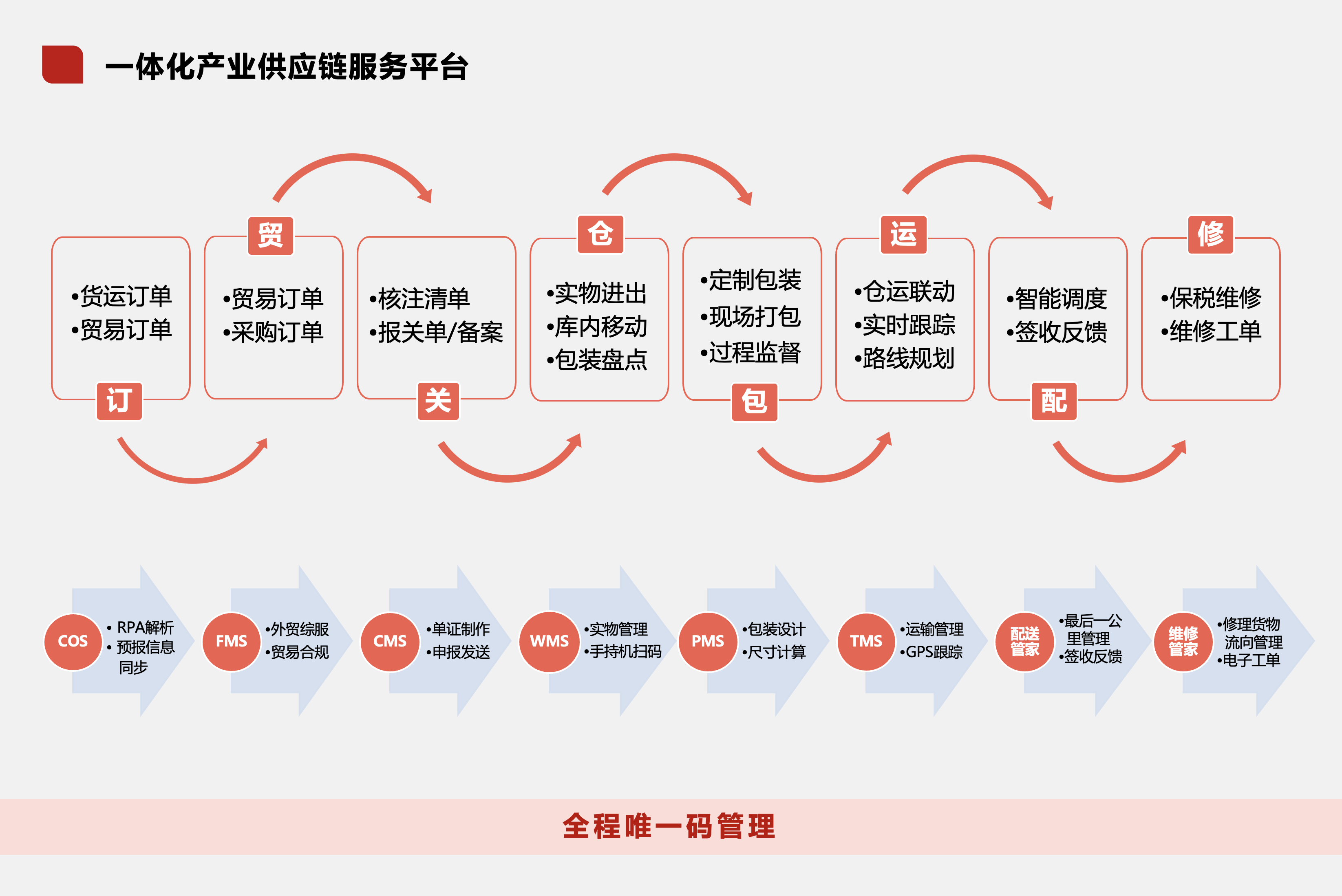 通过建立基于唯一识别码和三帐五流的一体化供应链平台,泓明将供应链各环节全面接入信息系统,全链路收集数据并融合汇聚,集中处理,让所有环节互联互通,实现数字化运营和智慧化作业,帮助客户以“数据”驱动决策与执行。同时,通过数智化、标准化,对整个供应链进行更高要求的管理,通过更细的管理颗粒度(料号级和序列号级的管理),保障贸易合规和供应链安全,提高供应链韧性。